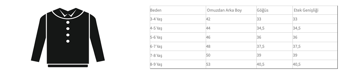Erkek Çocuk Gömlek Ölçüleri (Regular Fit Kesim)