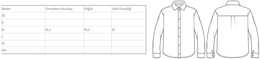 Kadın Gömlek Ölçüleri (Oversize Kesim)